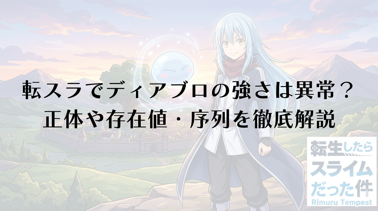 転スラでヒナタは死亡する?その後の復活や11巻の衝撃展開を解説 2026.03.04 転生したらスライムだった件 masato1024 どこで見れる? 転スラ・ユウキの正体と強さは?マモンやアンチスキルの驚異 2026.03.04 転生したらスライムだった件 masato1024 どこで見れる? 転スラのラファエルの正体とは?シエルへの進化と能力の全貌を徹底解説! 2026.03.04 転生したらスライムだった件 masato1024 どこで見れる? 転スラでディアブロの強さは異常?正体や存在値・序列を徹底解説 2026.03.04 転生したらスライムだった件 masato1024 どこで見れる? 転スラのディアブロの正体は?アニメや漫画の何巻で判明するか解説 2026.03.04 転生したらスライムだった件 masato1024 どこで見れる? 転スラ・ディアブロの裏切りは本当?正体やリムルへの忠誠心を徹底解説 2026.02.28 転生したらスライムだった件 masato1024 どこで見れる? 転スラ4期はどこまで放送?全5クールの内容と範囲を徹底予測 2026.02.28 転生したらスライムだった件 masato1024 どこで見れる? 転スラの完結とネタバレ!書籍23巻の結末やシズとの関係を解説 2026.02.28 転生したらスライムだった件 masato1024 どこで見れる? 転スラがつまらない?理由といつから面白くなるのか徹底解説 2026.02.28 転生したらスライムだった件 masato1024 どこで見れる? 佐藤輝明のメジャー挑戦はいつ?2025年の成績と移籍の可能性 2026.02.28 佐藤輝明 masato1024 どこで見れる? もっと見る