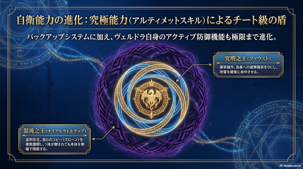 ヴェルドラ自身も、ただ守られているだけではありません。彼は自力で究極能力「究明之王(ファウスト)」、さらには「混沌之王(ナイアルラトホテップ)」を獲得しています。この能力がまたチート級に強いんです!