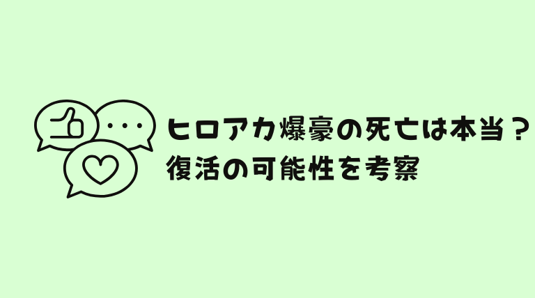 大人気漫画『僕のヒーローアカデミア』(ヒロアカ)の主要キャラクター、爆豪勝己に浮上した死亡説。漫画や単行本で描かれた心臓への攻撃はあまりに衝撃的で、多くのかっちゃんファンがその安否を心配しています。